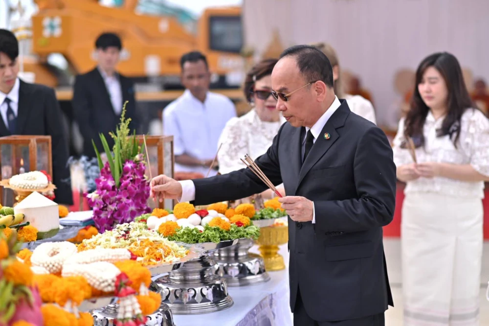 The ceremony began at 9:09 a.m. with a traditional Brahmin ritual, including chanting, offerings, and paying respect to sacred objects for auspiciousness. This was followed by a Buddhist ceremony with 9 monks chanting prayers to bless the occasion.