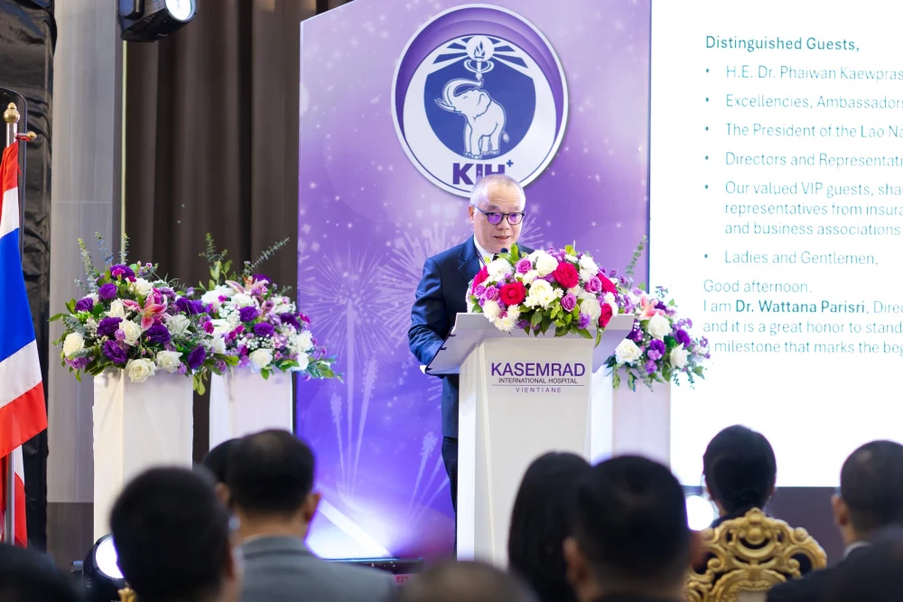 The event was honored by Dr. Dr. Phayvanh Keopraseuth, Deputy Minister of Health, Lao PDR, as the presiding guest, alongside Prof. Dr. Chalerm Harnphanich, M.D., Director, Chairman of the Executive Committee, Chief Executive Officer, Asst. Prof. Dr. Somporn Harnphanich, M.D., Chairman of the Board of Directors of Bangkok Chain Hospital Public Company Limited and Dr. Wattana Parisri, Director of Kasemrad International Hospital Vientiane. The ceremony was also attended by representatives from foreign embassies, international organizations, government agencies, private sectors from Thailand and Laos, clients, insurance companies, and numerous distinguished guests.